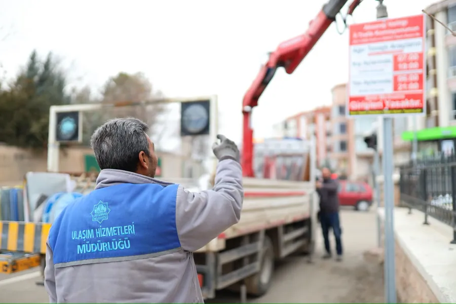 Aksaray Belediyesi Ulaşım Hizmetleri Müdürlüğü, İl Trafik Komisyonu’nun aldığı karar doğrultusunda şehir merkezine giren ağır tonajlı araç sürücülerini bilgilendirmek amacıyla uygun noktalara bilgilendirici trafik levhaları monte ediyor. Uygulamaya göre kamyon, çekici ve beton mikseri türü araçların belirlenen saatler dışında şehir merkezine girişine izin verilmeyecek.