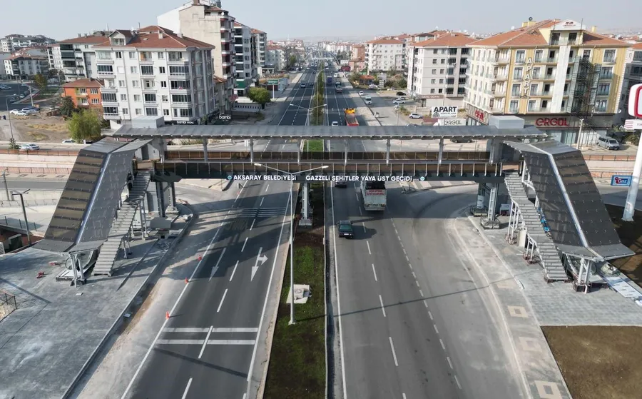 Aksaray Belediyesi tarafından yapımı tamamlanan E-90 Karayolu üzerinde Aksaray Belediyesi Gazzeli Şehitler Yaya Üst Geçidi, modern donanım ve taşıdığı manevi anlamla Aksaray'da yaya güvenliğini sağlayan önemli bir yatırım olarak öne çıkıyor.