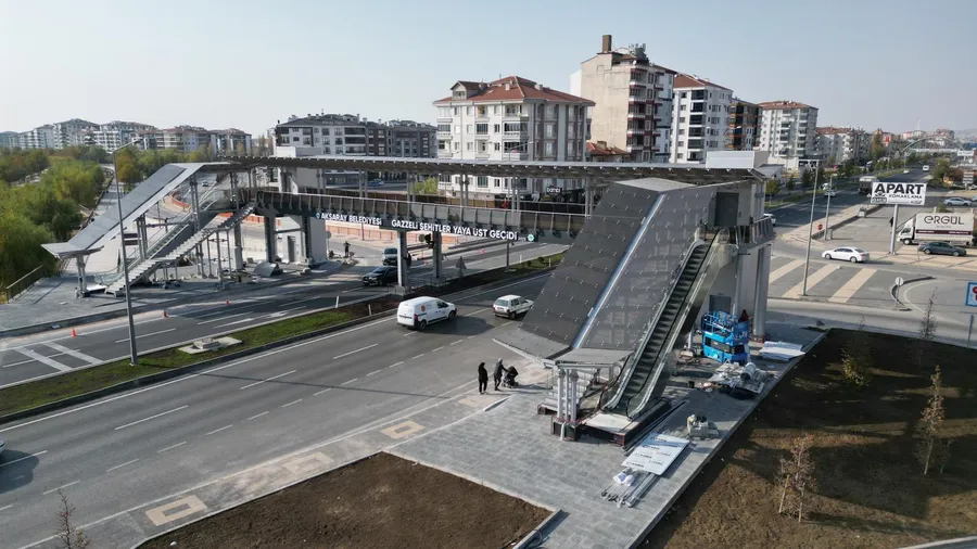 Aksaray Belediyesi, şehir şebekesinin yoğun noktalarından biri olan E-90 Karayolu üzerine inşa ettiği Gazzeli Şehitler Yaya Üst Geçidi projesinde son aşamaya geldi. Teknik testlerin başlatıldığı geçitte yürüyen merdiven, asansör ve güvenlik sonuçları kontrolleri devam ederken merdiven dış cepheve korkulukları da kısa sürede tamamlanacak.