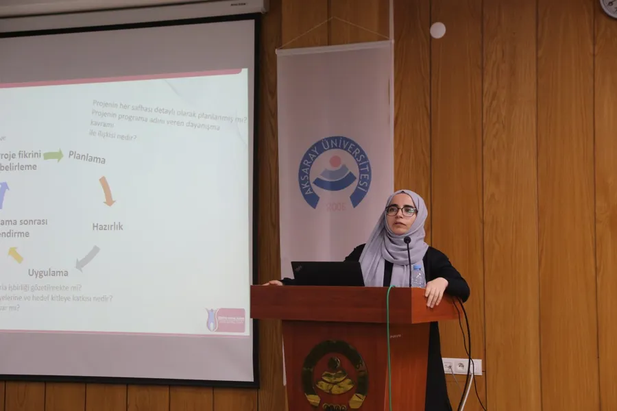 Eğitim; Türkiye Ulusal Ajansı personelleri Gül Kaplan, Muhammed Gürel ve Furkan Emre Karagöl tarafından gerçekleştirilen sunumlarla zenginleşti. Programa, Aksaray Üniversitesi Rektör Yardımcısı Prof. Dr. Yavuz Selim Çakmak da katılarak öğrencilere hitap etti. Öğleden sonraki oturumda ise proje üretmek isteyen öğrenci topluluklarına yönelik istasyon çalışmaları yapılarak daha derinlemesine ve uygulamalı bir çalışma yürütüldü. Katılımcılar, proje yazma sürecini deneyimleme ve Ajans personellerinden geri bildirim alma fırsatı buldular. Etkinliğin sonunda ASÜ Dış İlişkiler Koordinatörü Prof. Dr. Melayib Bilgin tarafından Türkiye Ulusal Ajansı personellerine teşekkür belgesi takdim edildi.