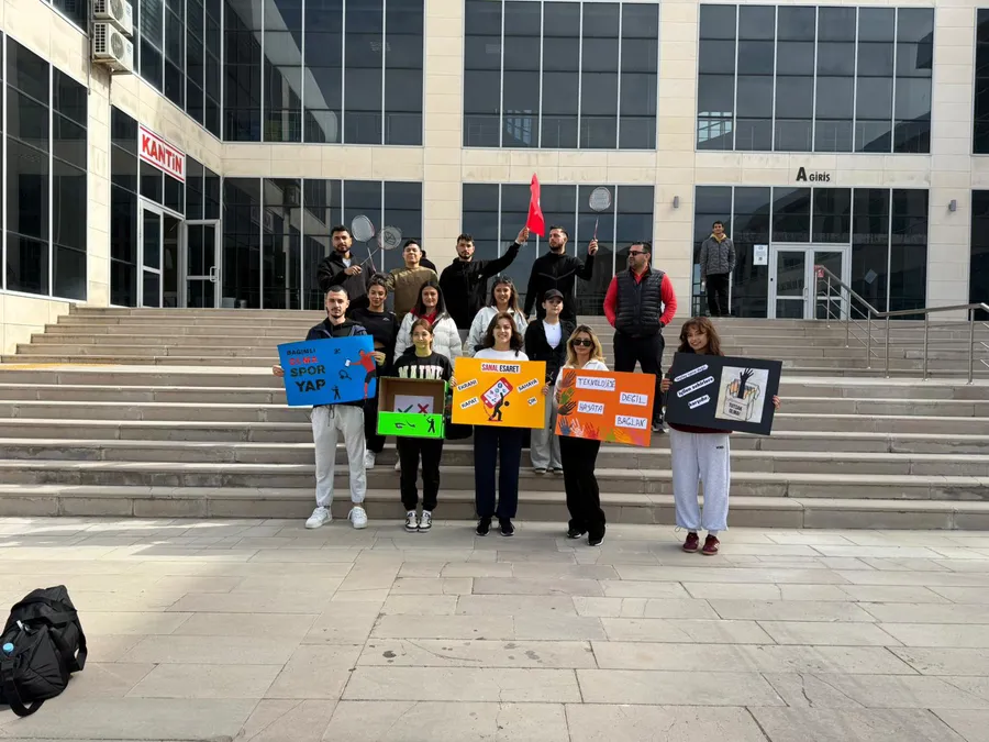 Aksaray Üniversitesi (ASÜ) Spor Bilimleri Fakültesi Spor Yöneticiliği Bölümü öğrencileri, teknoloji bağımlılığına dikkat çekmek ve sporun toplumsal farkındalık oluşturmadaki gücünü vurgulamak amacıyla anlamlı bir etkinlik gerçekleştirdi.
