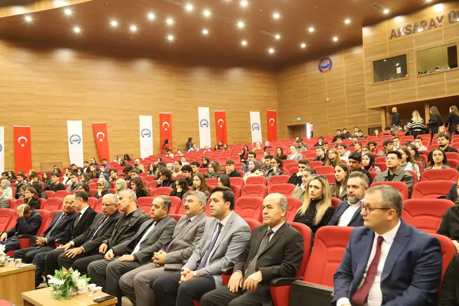 Aksaray Üniversitesi (ASÜ) Konferans Salonu’nda düzenlenen anma programına Aksaray Üniversitesi Rektör Yardımcıları Prof. Dr. Ömer Köse, Prof. Dr. Erşan Sever, fakülte dekanları, akademisyenler ve öğrenciler katıldı. Saat 09.05’te gerçekleşen saygı duruşunun ardından başlayan anma programında Türkçe Öğretmenliği 4. Sınıf öğrencisi Saithan Saçma, Gazi Mustafa Kemal Atatürk’ün aradan geçen yıllara rağmen, fikirlerinin ve ideallerinin Türk gençliğine ilham vermeye devam ettiğini söyledi.