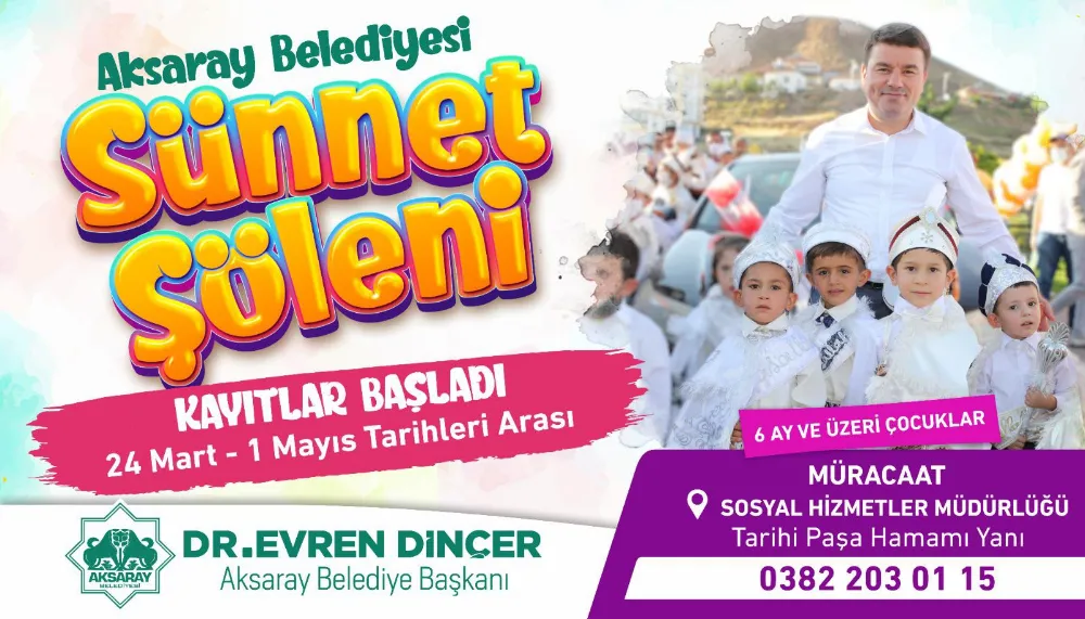 Aksaray’da geleneksel hale gelen toplu sünnet şöleni için kayıt süreci başladı. Aksaray Belediyesi tarafından organize edilen etkinlik kapsamında, ihtiyaç sahibi ailelerin çocukları ücretsiz olarak sünnet ettirilecek.