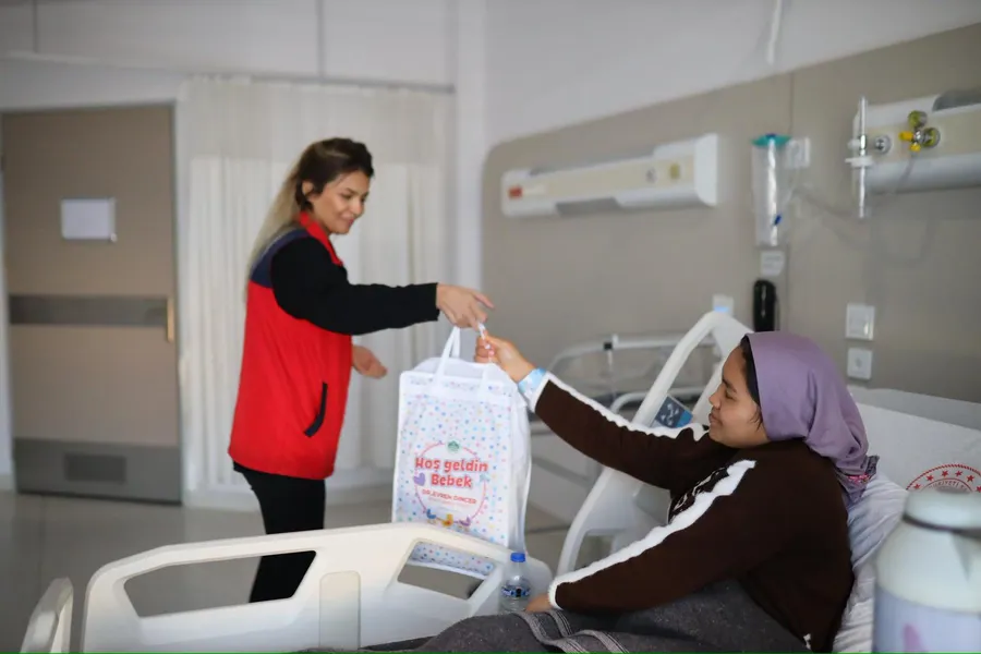 Yeni doğum yapan annelerimize hediye ettiğimiz;Hoş Geldin Bebek Setimiz ile ailelerimizin yükünü hafifletiyoruz.