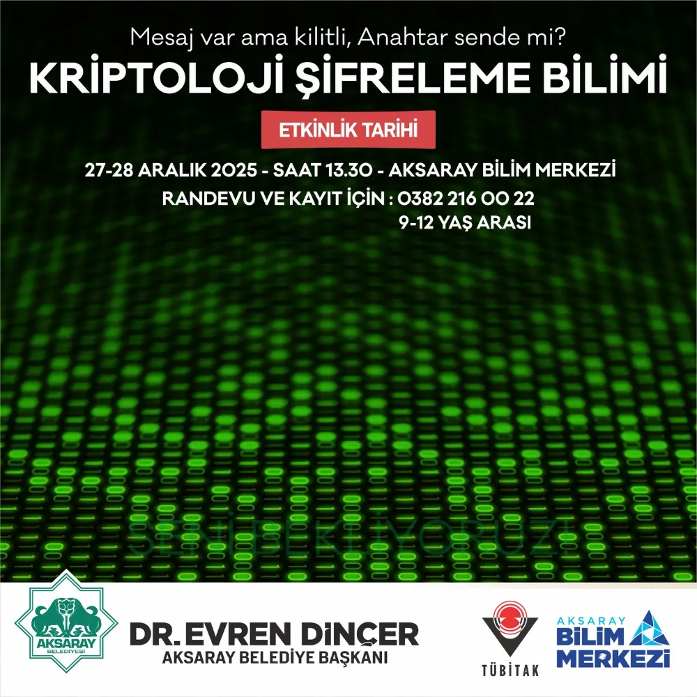 Bilim Merkezimizde gerçekleştireceğimiz ‘’Kriptoloji Şifreleme Bilimi’’ etkinliğine çocuklarımız davetlidir.