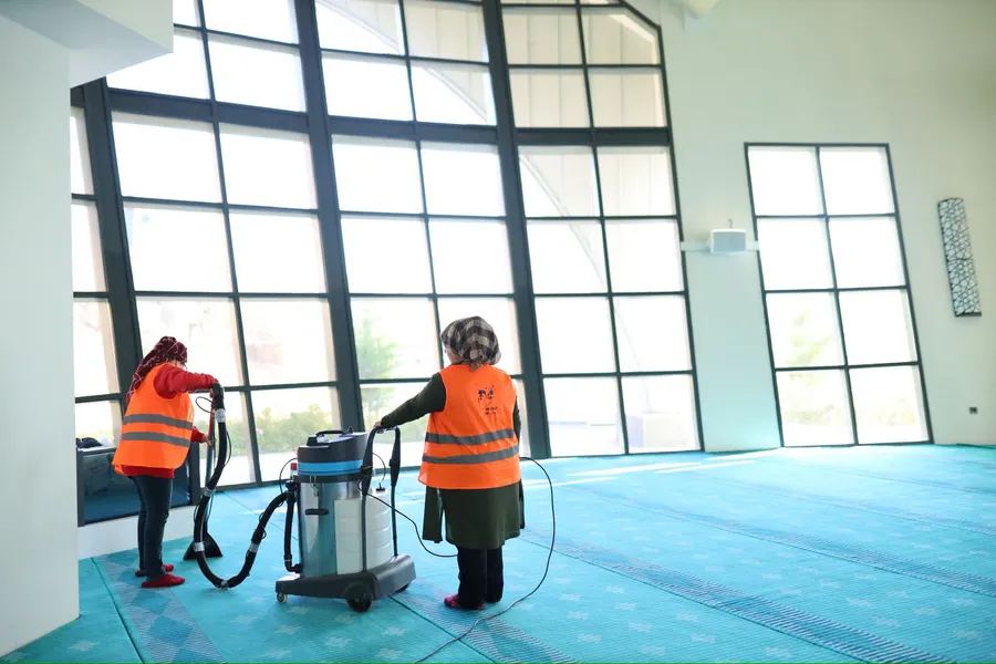Bizler de ibadetlerimizi daha düzenli ve temiz ortamda yapabilmeniz için camilerimizi program dahilinde temizliyoruz. Ekiplerimiz;Bedir Muhtar Külliyemizde.
