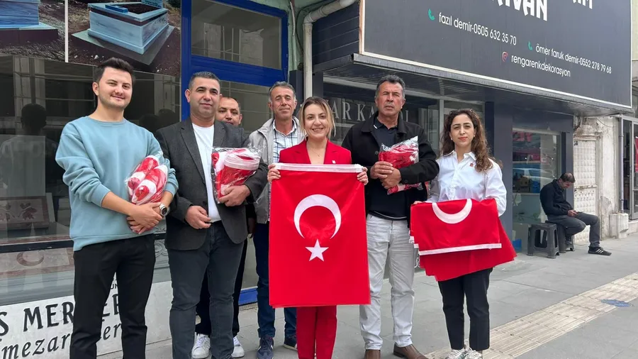 Cumhuriyet’in 102. yılı kutlamaları kapsamında CHP Aksaray Merkez İlçe Başkanı Yasemin Turan Özdemir, parti yönetimi ile birlikte 29 Ekim Cumhuriyet Bayramı dolayısıyla esnafları tek tek ziyaret ederek Türk bayrağı dağıttı.
