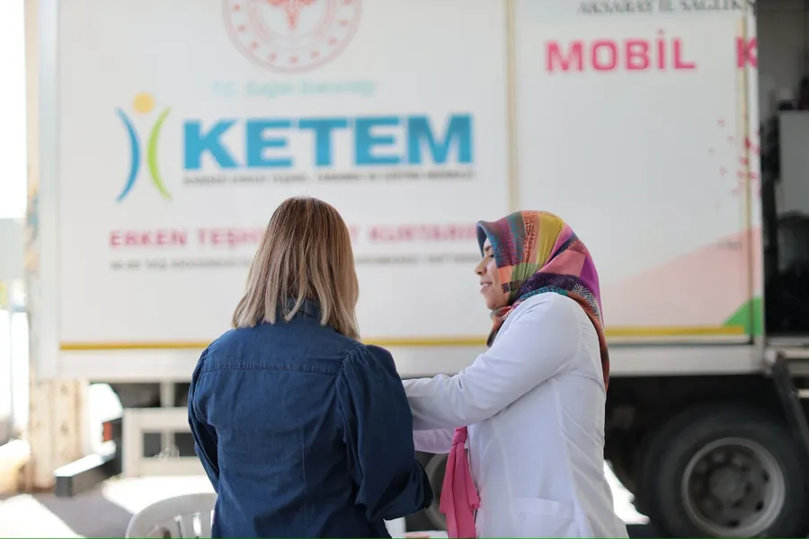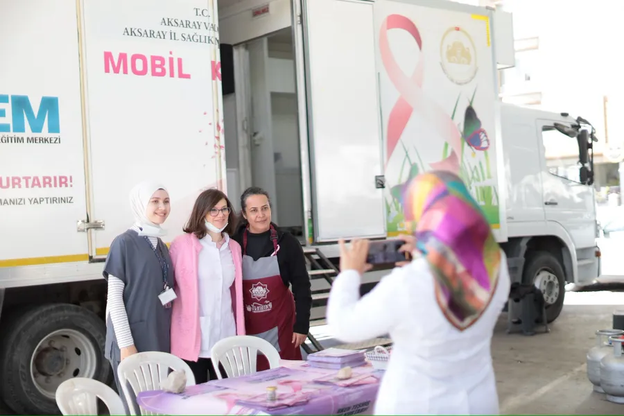 Aksaray İl Sağlık Müdürlüğümüzün;KETEM Mobil Tırı ile ücretsiz meme ve rahim ağzı kanseri taramalarımız;Cumartesi Pazarında devam ediyor.