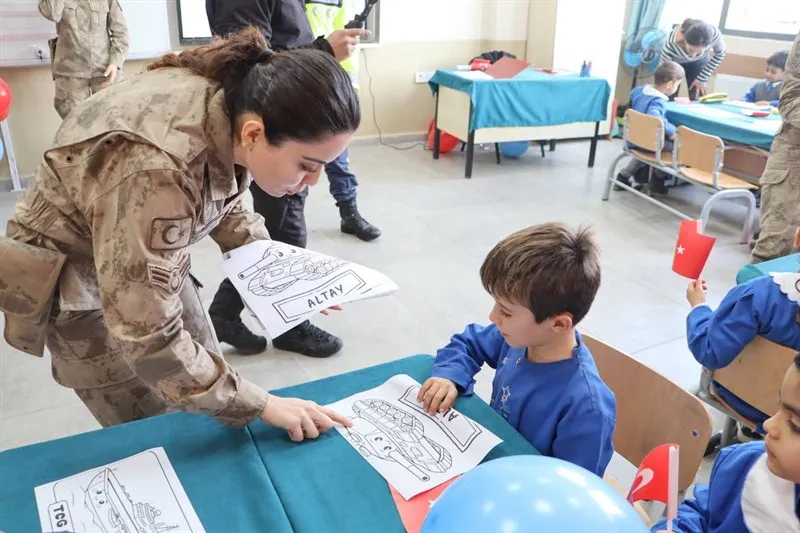Hatay İl Jandarma Komutanlığı, Reyhanlı'daki Jandarma İlkokulu'nda Yerli Malı Haftası etkinliği düzenledi. Etkinlikte yerli üretim araçları tanıtıldı, öğrencilerle boyama yapıldı ve hediyeler verildi.