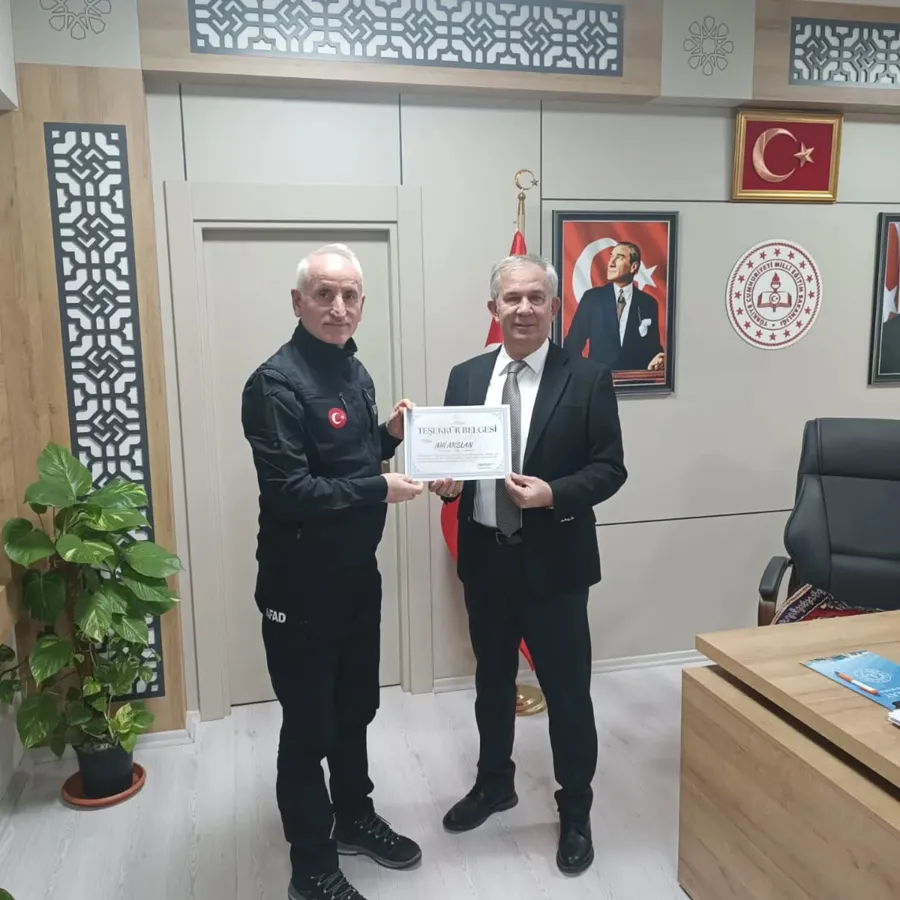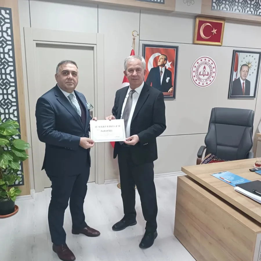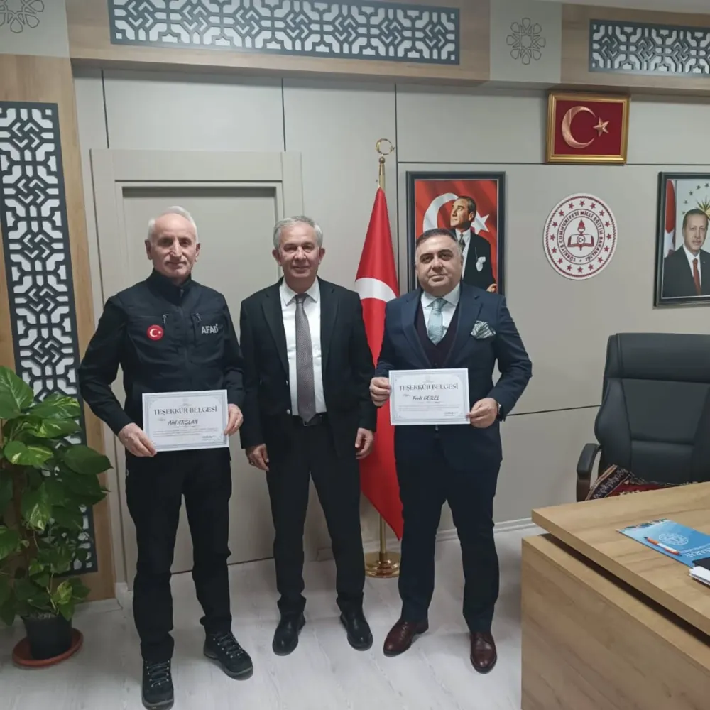 İl Milli Eğitim Müdürümüz Sayın Metin Alpaslan, kurumlarımız arasında yürütülen çalışmalar kapsamında sağladıkları değerli katkılar dolayısıyla AFAD İl Müdürü Sayın Adil Arslan ile Aksaray Sanayi ve Teknoloji İl Müdürü Sayın Ferdi Gürel’e teşekkür belgesi takdim etti.