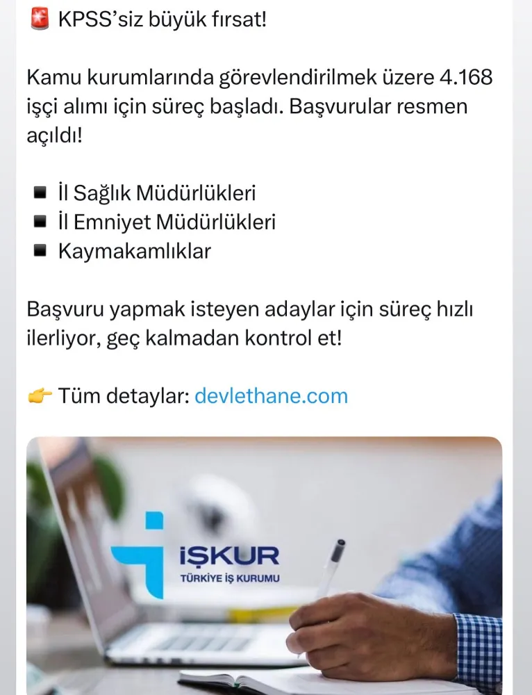 KPSS’siz 4.168 işçi alımı başladı!