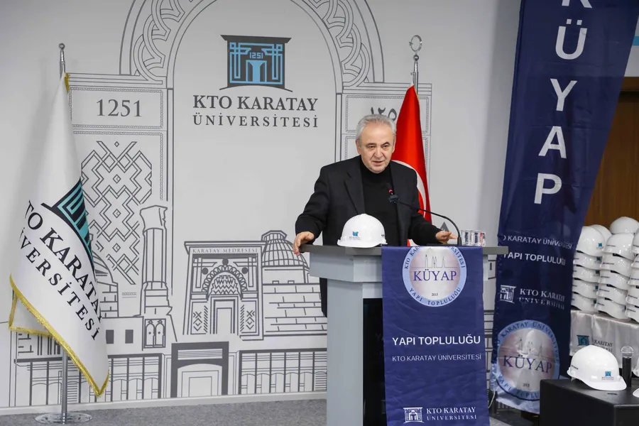 Törenin açılış konuşmasını yapan KTO Karatay Üniversitesi Rektörü Prof. Dr. Fevzi Rifat Ortaç; “Üniversitemizin kuruluşu, sosyal bir amaç taşıyor. Dolayısıyla öğrencilerimizin bu alana yönelik olarak sosyal faaliyet yürütmeleri, KTO Karatay Üniversitesi'nin misyonunun bir parçasıdır. Biz bununla büyük gurur duyuyoruz. Baret takmak, söz vermektir. Sadece kendinizi korumayacaksınız. Bareti giyenler bizi koruyacaklar. Üniversitemiz, kuruluşundan itibaren sosyal sorumluluk bilinciyle hareket eden bir anlayış üzerine inşa edilmiştir. Bu nedenle öğrencilerimizin sosyal alanlarda aktif olarak yer alması, KTO Karatay Üniversitesi’nin misyonunun ayrılmaz bir parçasıdır. Öğrencilerimizin bu yöndeki her çalışması bizler için bir gurur kaynağıdır.