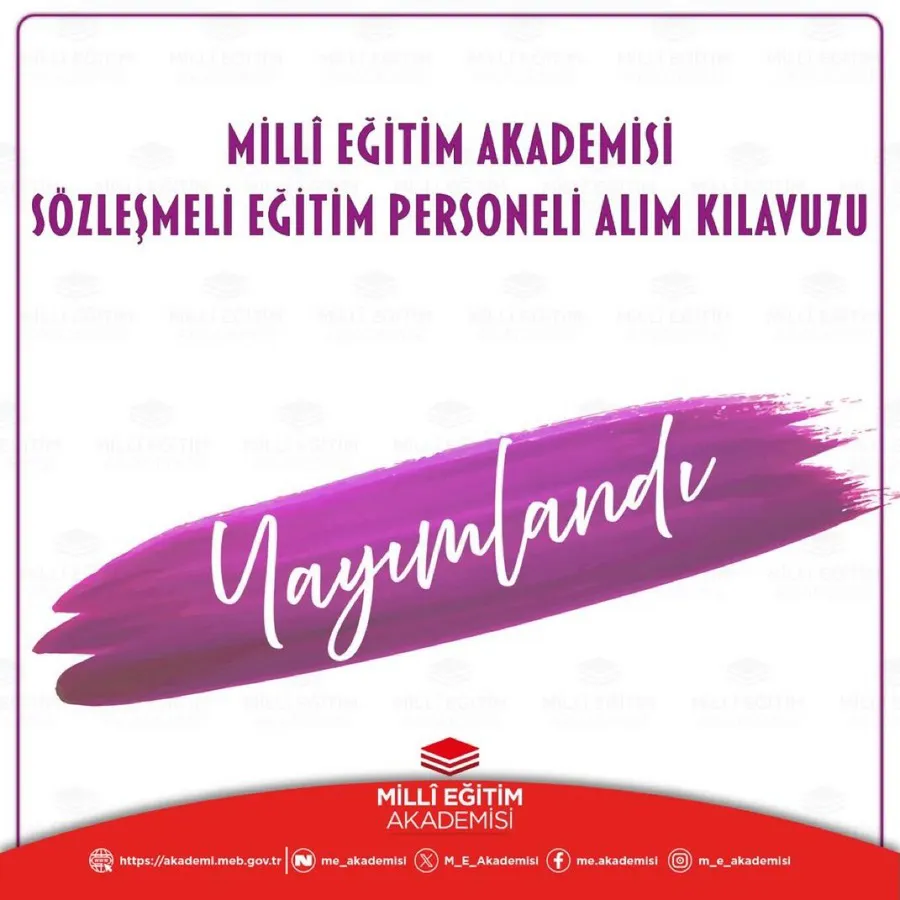 Millî Eğitim Bakanlığı tarafından, Millî Eğitim Akademisi bünyesinde görev yapmak üzere istihdam edilecek sözleşmeli eğitim personeline ilişkin kılavuz yayımlandı.