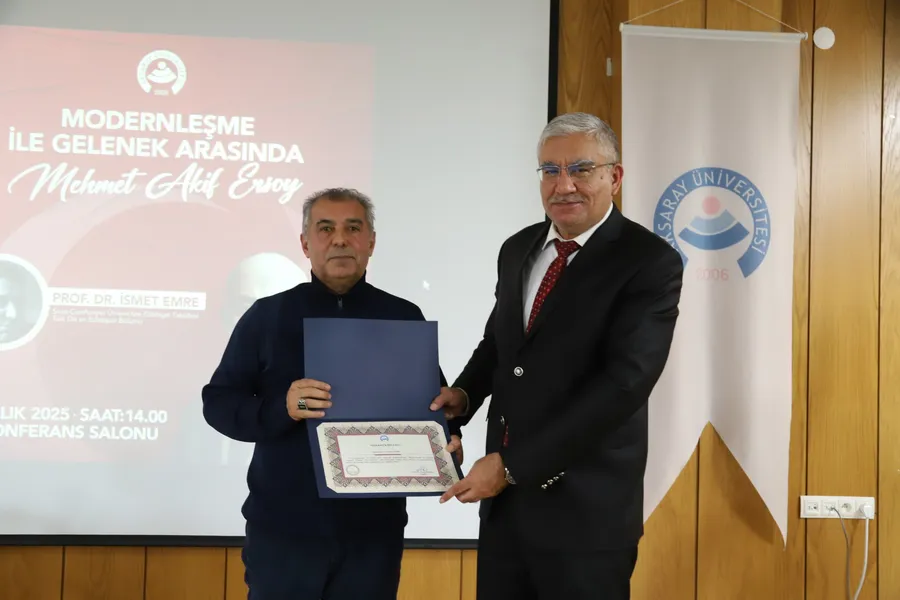 Konuşmasında Mehmet Akif’in “Asım’ın Nesli” idealine de değinen Prof. Dr. Emre, Akif’in erdemli, sınırlarını bilen, başkasına zarar vermeyen ancak gerektiğinde kendisini ve değerlerini koruyabilecek güçlü bir insan ve toplum tasavvuru ortaya koyduğunu dile getirdi. Batı medeniyetine yönelik eleştirilerinin de bu çerçevede değerlendirilmesi gerektiğini kaydeden Prof. Dr. Emre, Akif’in Batı’nın ilmini, tekniğini ve sanatını almayı savunduğunu; buna karşılık kimlik ve ahlaki değerlerden vazgeçilmesine ise kesin bir şekilde karşı çıktığının altını çizdi. Konuşmasında Osmanlı Devleti’nin 19. yüzyıldaki durumuna da değinen Prof. Dr. Emre, Osmanlı’nın yenilgilerinin temelinde bilime ve yeniliğe mesafeli duruşun etkili olduğunu ifade etti. Batı’nın Osmanlı’yı “Hasta Adam” olarak nitelendirmesinin politik bir yaklaşım olduğunu kaydeden Prof. Dr. Emre, bu söylemin Batı’yı “doktor”, Osmanlı’yı ise “hasta” konumuna yerleştirdiğini ve Mehmet Akif’in bu bakış açısına itiraz ettiğine dikkat çekti. Konferansta Mehmet Akif Ersoy’un şiirlerinden örnekler de paylaşan Prof. Dr. Emre, Akif’in düşünce dünyasının bugün de yol gösterici nitelik taşıdığını ifade etti. Konferans soru-cevap bölümünün ardından sona erdi. Programın ardından ASÜ Rektör Yardımcısı Prof. Dr. Ömer Köse, Prof. Dr. İsmet Emre’ye teşekkür belgesi takdiminde bulundu.