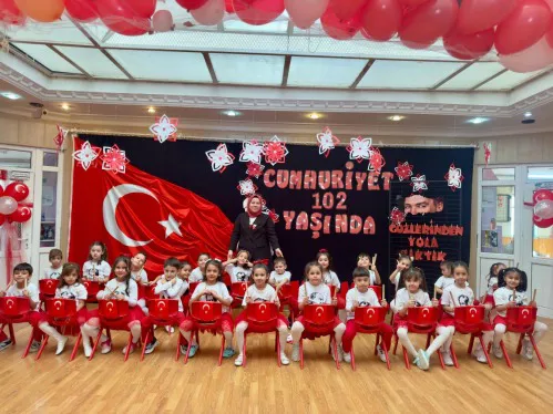Programda Nene Hatun Anaokulu personelleri başta bu anlamlı etkinliğe çocuklarla birlikte emek harcayan tüm öğretmenler ve çalışan personeller Cumhuriyet’in çoşkusunu ve heyecanı velilerle birlikte paylaştı.