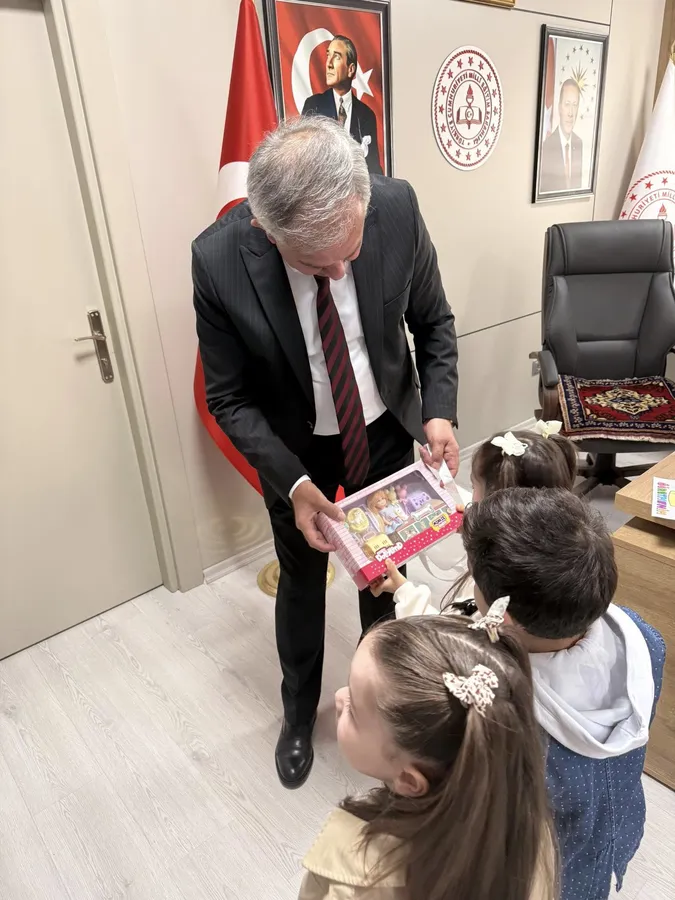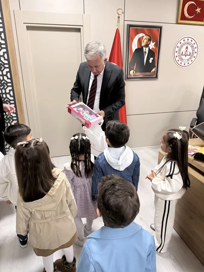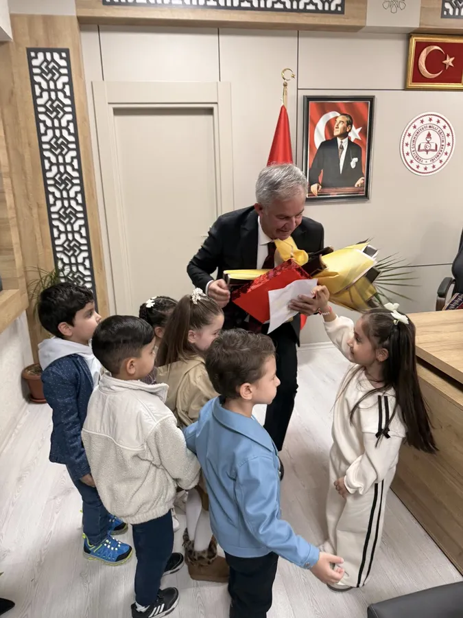 Ziyarette öğrenciler, kendi elleriyle hazırladıkları hediyeleri Sayın Müdürümüze takdim ettiler. Müdürümüz de bu özel ziyaretten duyduğu memnuniyeti dile getirerek öğrencilere küçük sürpriz hediyeler verdi.