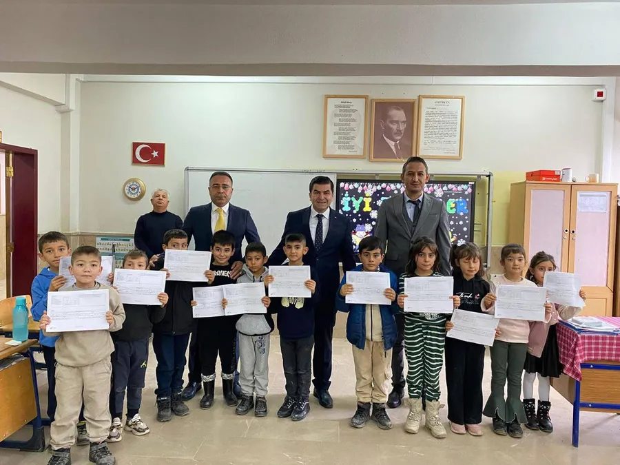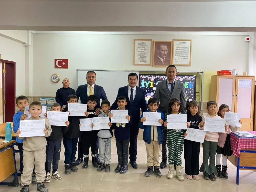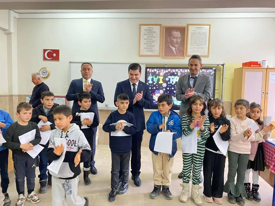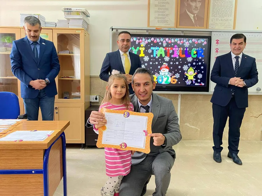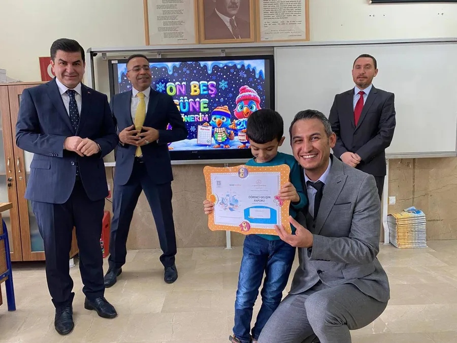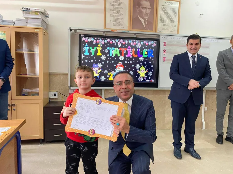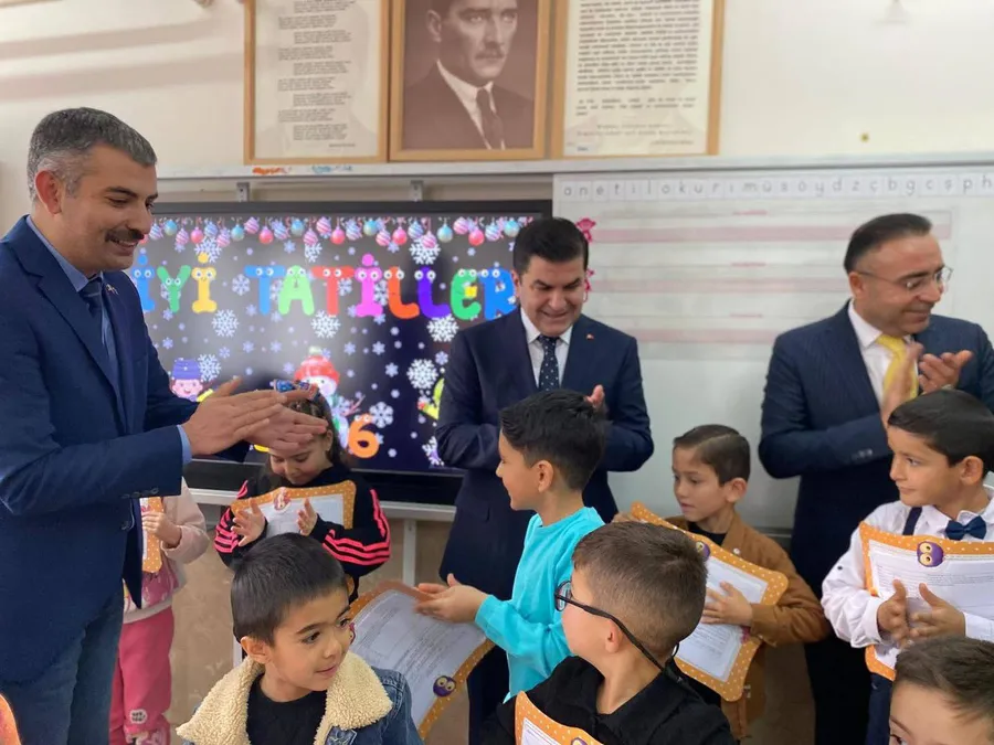 2 hafta sürecek Yarıyıl Tatili'nin başlaması nedeniyle Ortaköy Kaymakamımız Sn. Ahmet Karatepe,İlçe Millî Eğitim Müdürümüz Ramazan Duman'la bitlikte Ahmet Yavuz İlkokulu'nda ''Karne Dağıtım'' törenine katılarak öğrencilere ''iyi tatiller'' dileğinde bulundular.