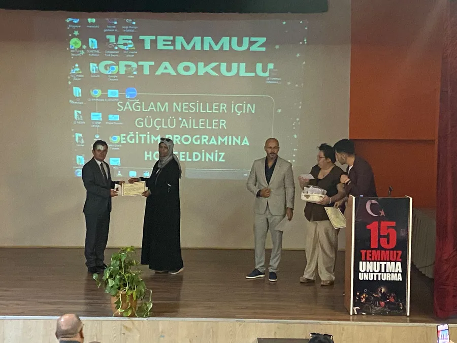 2025 yılının “Aile Yılı” ilan edilmesi dolayısıyla, 15 Temmuz Ortaokulunda aile kurumunun önemini pekiştirmek, ebeveynlerin çocuk gelişimi konusundaki farkındalıklarını artırmak ve okul-aile iş birliğini güçlendirmek amacıyla “Sağlam Nesiller İçin Güçlü Aileler” adlı aile eğitimi programı düzenlendi.
