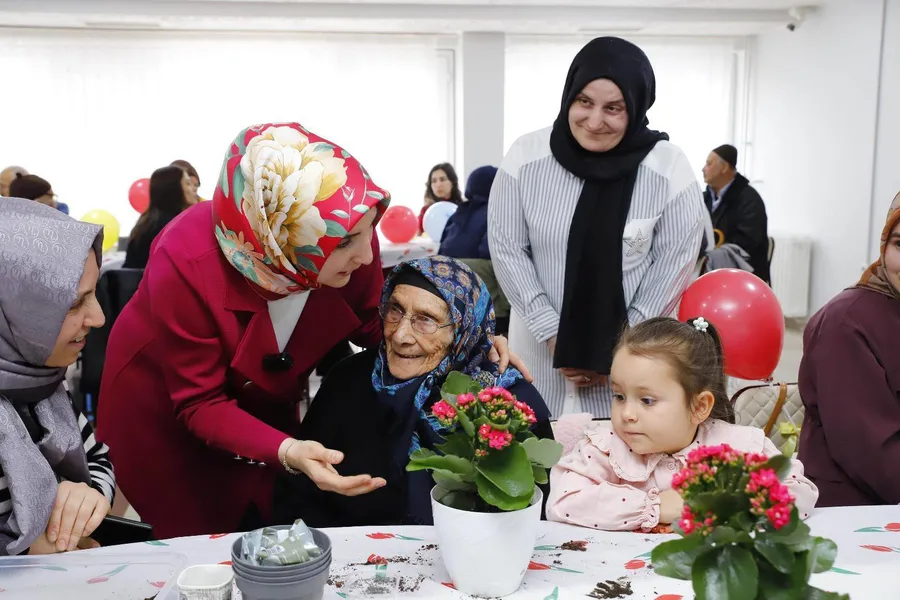Eşim Merve Hanım; Yaşlılar Haftası nedeniyle, Kadın Aktivite Merkezimizdeki anneler ve kıymetli evlatları ile birlikte;