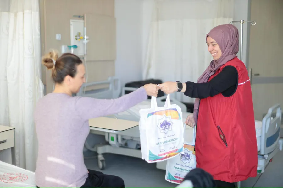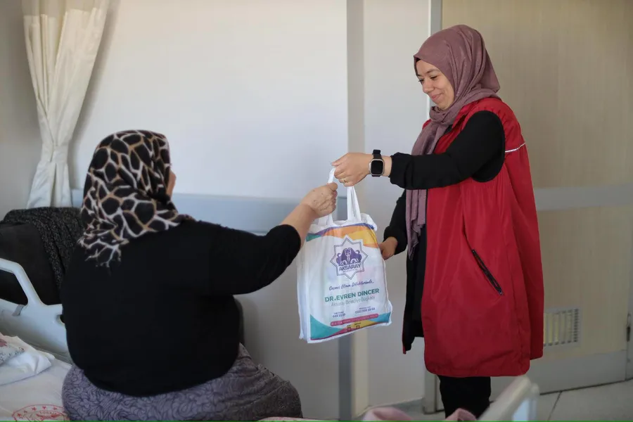 Aksaray EAH'da tedavi gören vatandaşlarımızı ziyaret ederek geçmiş olsun dileklerimizi iletiyor, Hasta Bakım Setlerimizi hediye ediyoruz.
