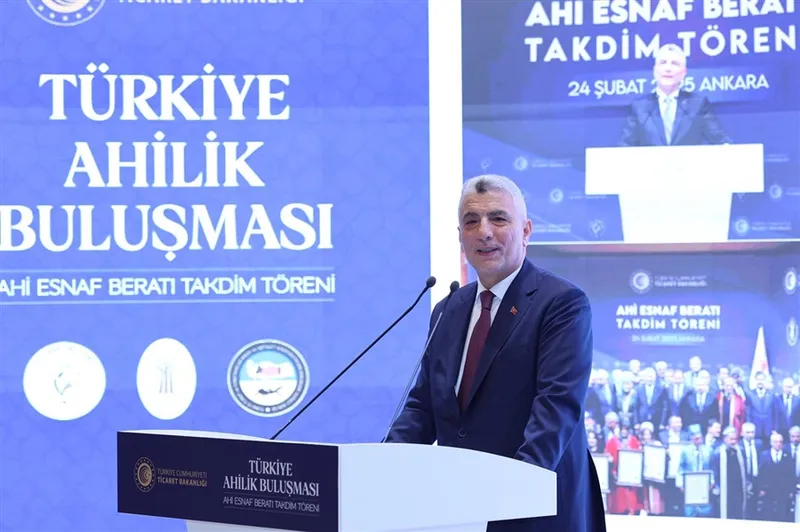 Ticaret Bakanı Ömer Bolat, Ahilik beratı takdim töreninde esnafa 718 milyar liralık kredi desteği sağlandığını, finansman maliyetlerinin düşürüldüğünü ve yeni bir strateji belgesi üzerinde çalışıldığını duyurdu.