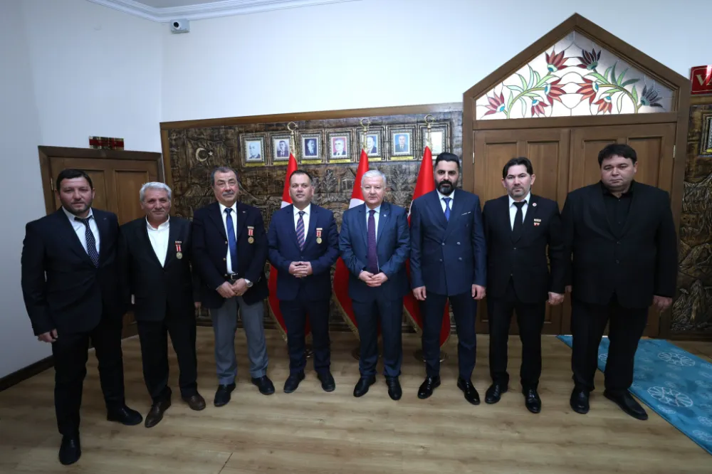Vatan Gazileri ve Şehit Yakınları Derneği Başkanı Yaşar Gücenmez ve beraberindeki dernek yöneticileri, Vali Murat Duru’ya “hayırlı olsun” ziyaretinde bulundular